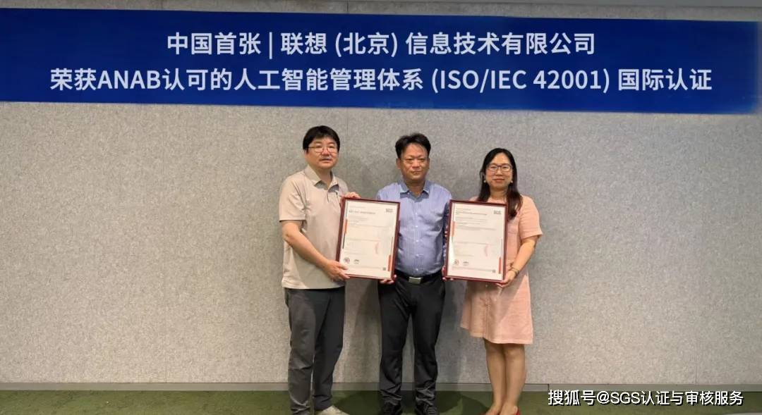 联想()消息手艺无限公司(简称联想消息手艺)获得由SGS颁布的中国首张ANAB承认的ISO/IEC 42001人工智能办理系统认证证书。从尺度制定到手艺验证,
